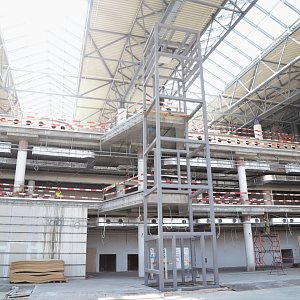 Строительство терминала международных авиалиний выходит на финишный этап – генеральный подрядчик DBC Consultants приступил к чистовой отделке терминала, активно идет поставка и монтаж оборудования и инженерных сетей. Журналистам было представлено текущее состояние дел на объекте. Представителей СМИ провели по этажам строящегося терминала, показали будущие зоны регистрации, досмотра и выдачи багажа, залы ожидания, посадочную галерею и основания телетрапов.